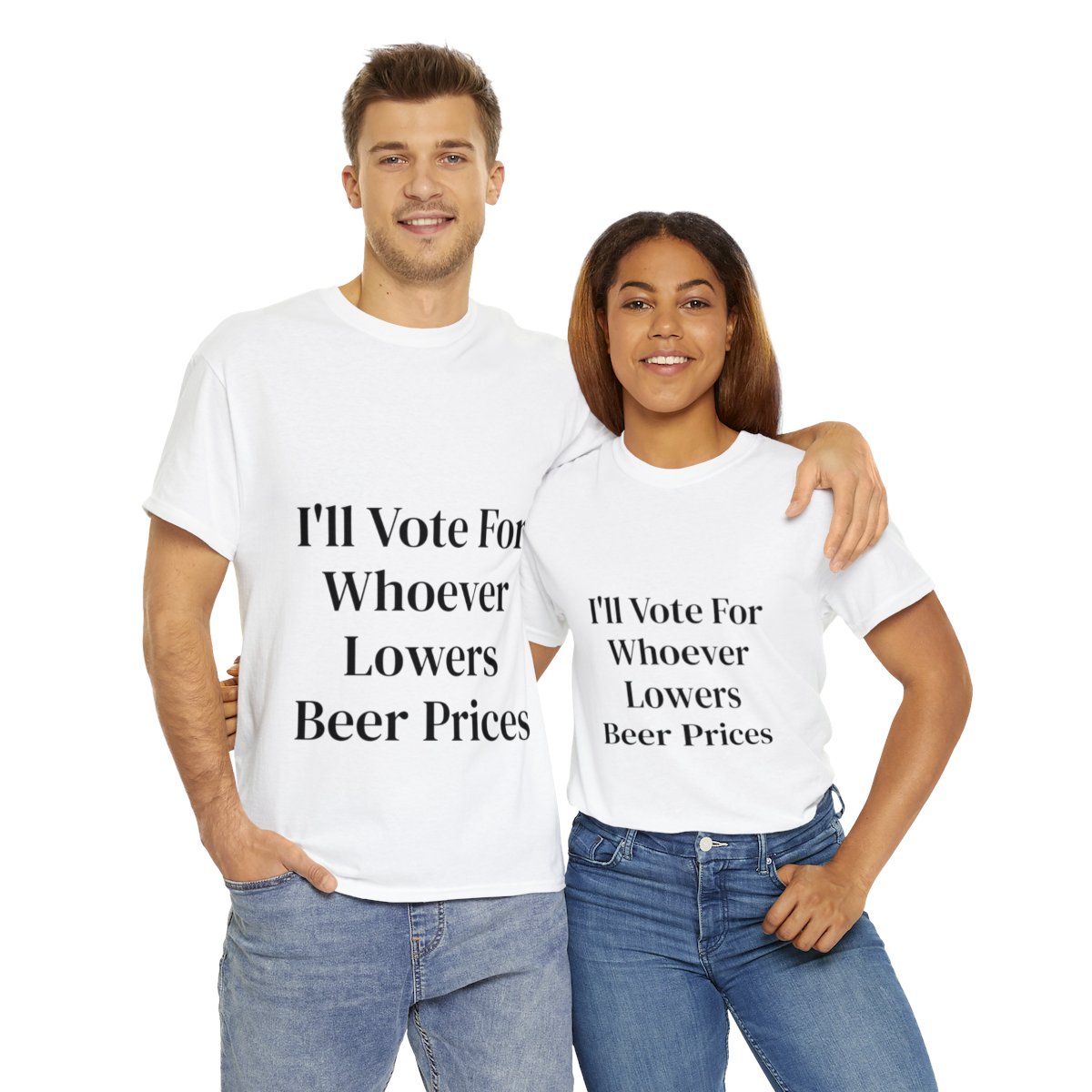 I’ll Vote for lower beer prices Unisex Heavy Cotton Tee